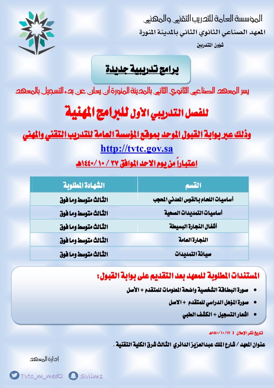 المعهد الصناعي الثانوي الثاني بالمدينة On Twitter التخصصات المتاحة للتقديم بالمعهد بنظام الدبلوم ونظام البرامج وخطوات التقديم ع المعهد