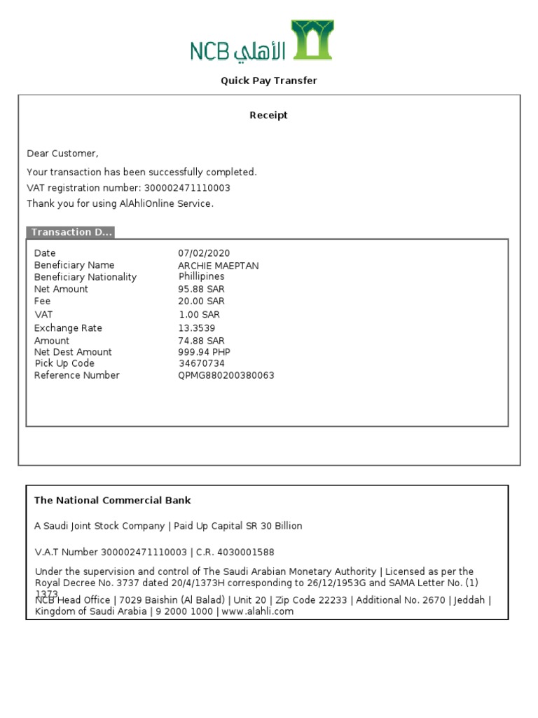 Quick Pay Ncb Alahli Bank